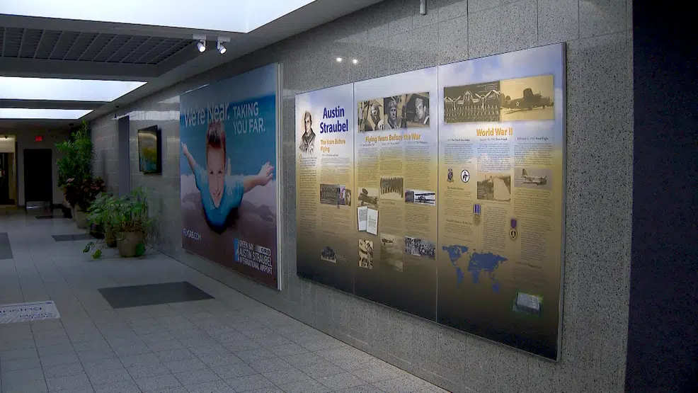 A display of Lt. Col. Austin Straubel at Green Bay Austin Straubel International Airport (IMAGE: Courtesy of Fox 11 WLUK)