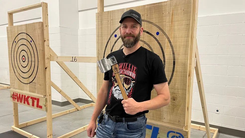 “Why do we do knife throwing? Because it’s fun. It’s challenging. I think it kind of speaks to a basic instinct almost. It’s just something that’s fun to do; it’s easy to do but still challenging,” said Walters, World Knife Throwing League Commissioner.