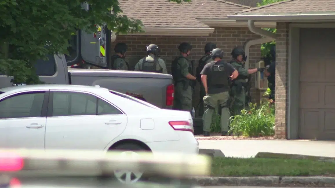 At one point, the SWAT team did walk two people to squad cars but police only referred to one suspect in a message about what happened.